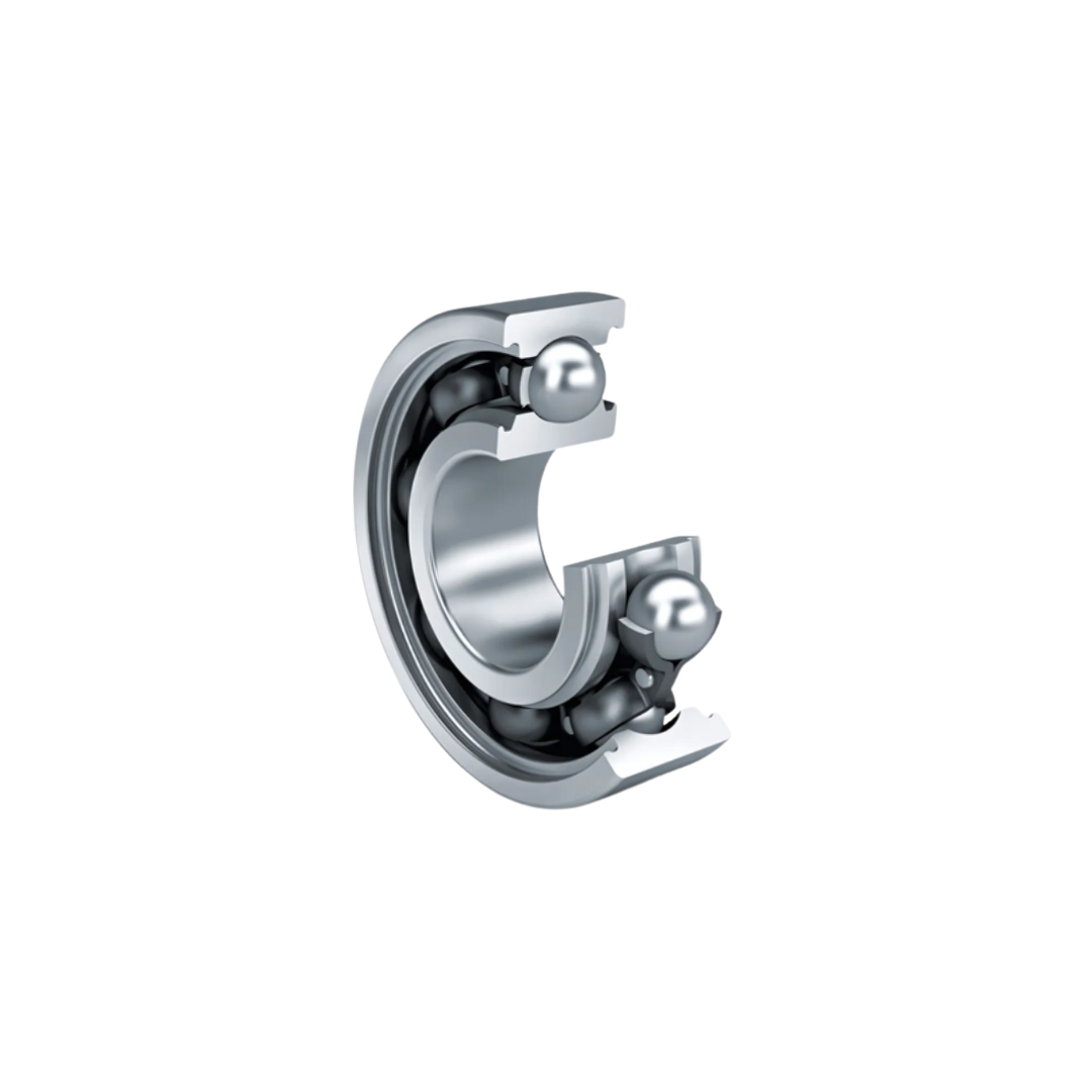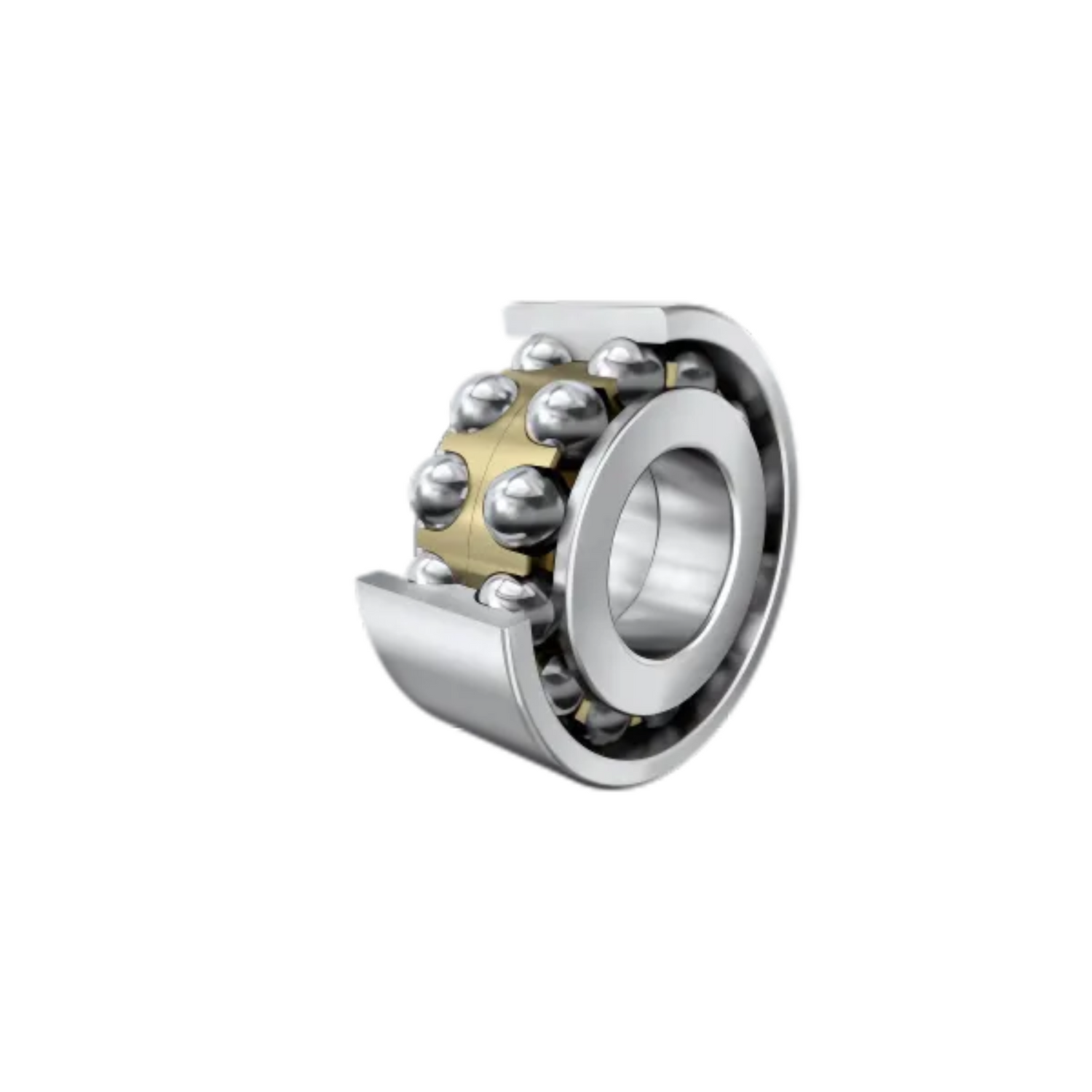 Single-row angular contact ball bearings are self-retaining units with solid inner and outer rings and ball and cage assemblies with polyamide, sheet metal or brass cages. The raceways of the inner and outer rings are offset from each other along the bearing axis. The bearings are available in open and sealed designs. Their angular adjustment facility is very limited.
