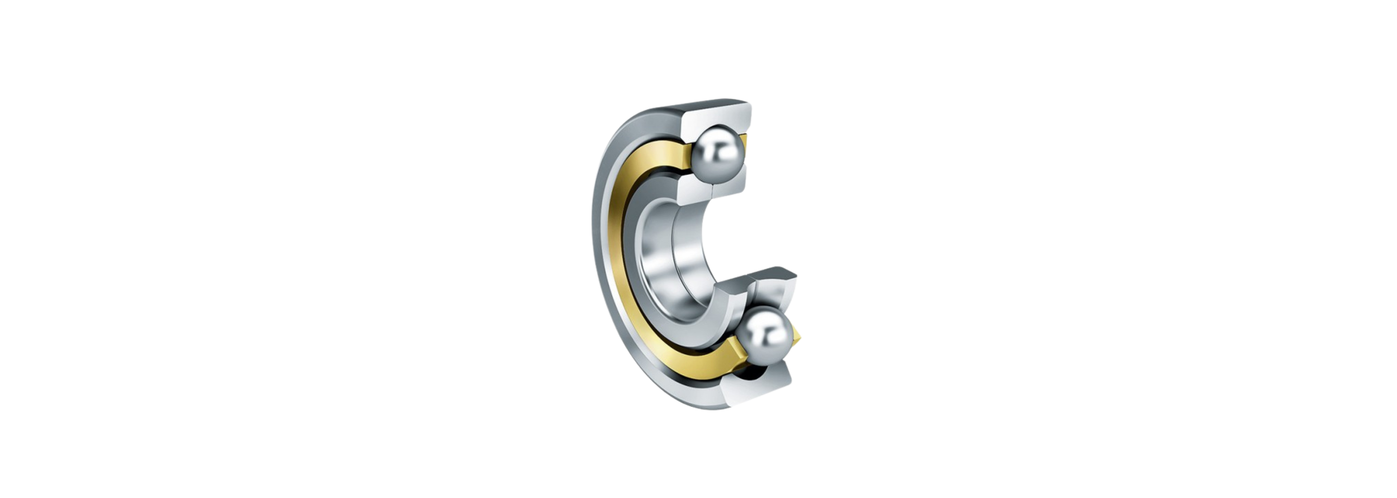 In angular contact ball bearings, the forces are transmitted from one raceway to the other at a specific contact angle (oblique to the radial plane). The bearings are therefore suitable for radial and axial loads acting simultaneously. As the nominal contact angle increases, so does the axial load carrying capacity. As a result, angular contact ball bearings are more suitable than deep groove ball bearings for supporting higher axial forces.The bearings are available in a single row design as single bearings or as a pair of universal bearings as well as in a double row design.